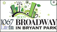 Patrocinado por la emisora de radio de Nueva York 106.7 Lite FM, ofrece, a lo largo de un mes, diversas actuaciones gratuitas de los musicales actualmente en cartel en Broadway y el Off-Broadway. En la edición de este año destacan los números que interpretarán los elencos de BILLY ELLIOT, 9 TO 5, ROCK OF AGES o NEXT TO NORMAL, entre muchos otros. Las actuaciones tendrán lugar cada jueves a partir del 9 de julio al mediodía, entre las 12.30h y las 13.30h. El 13 de agosto finalizará la edición actual de `Broadway in the Bryant Park´.