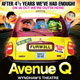 | AVENUE Q finalizará funciones en el West End el 30 de octubre 15/07/2010 El musical de Robert Lopez, Jeff Marx y Jeff Whitty bajará el telón por última vez en el Wyndham’s Theatre tras más de 4 años en cartel en Londres. leer más |
